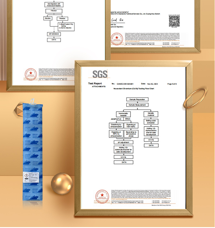 集装箱在运输的过程中会因不同温度、湿度的变化而出现水蒸汽凝结的现象,采用集装箱干燥剂可降低露点而使集装箱的凝水现象得到控制,使内装货物免受侵害。集装箱干燥剂吸水后仍能保持外观干燥且不产生任何污染,是绿色环保型的防潮产品。
